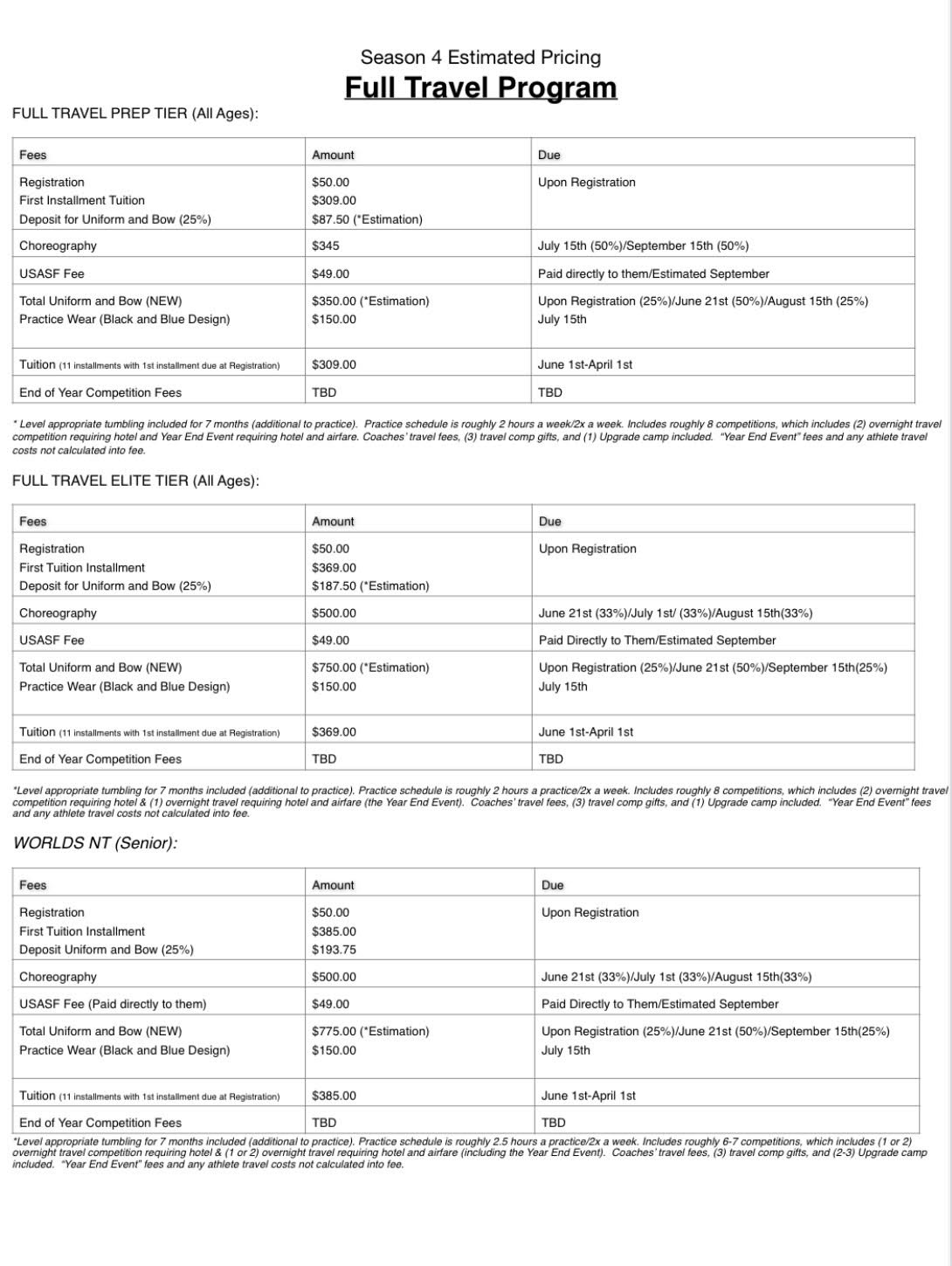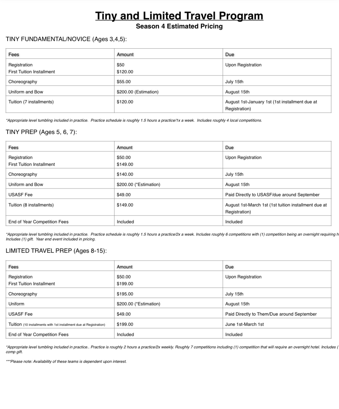 Season 4 Estimated Pricing for Tiny and Limited Travel Program